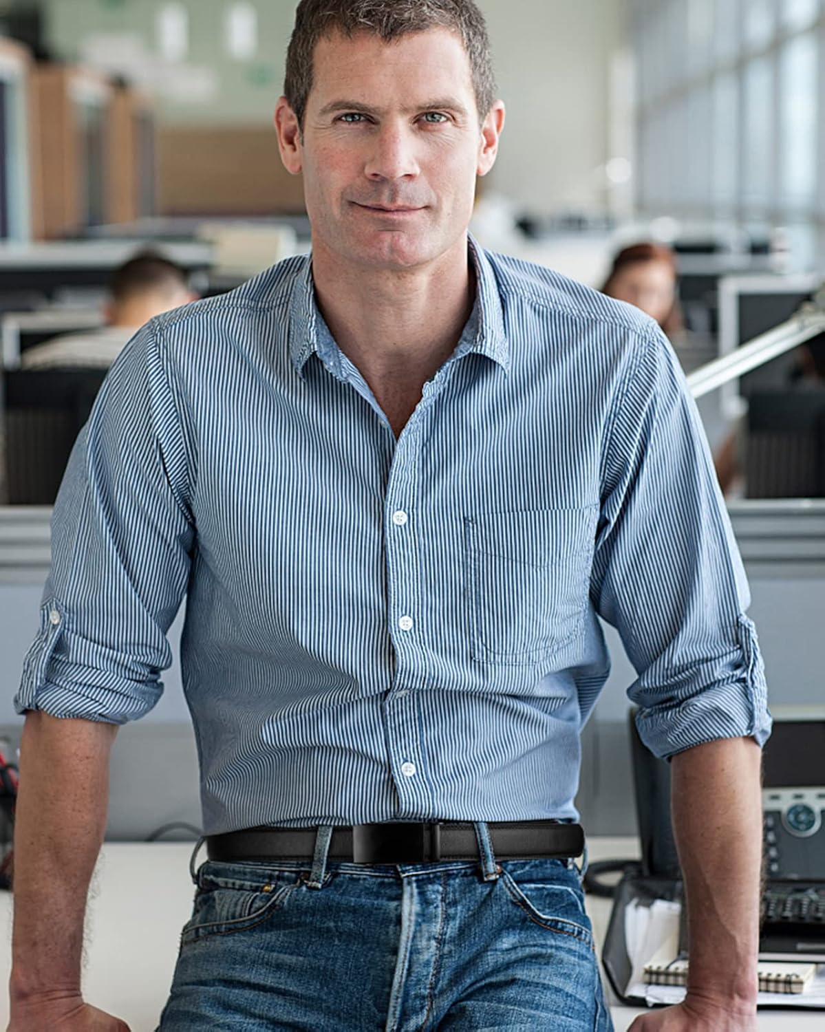 Men’s 35mm Classic Buckle Leather Belt for Jeans
