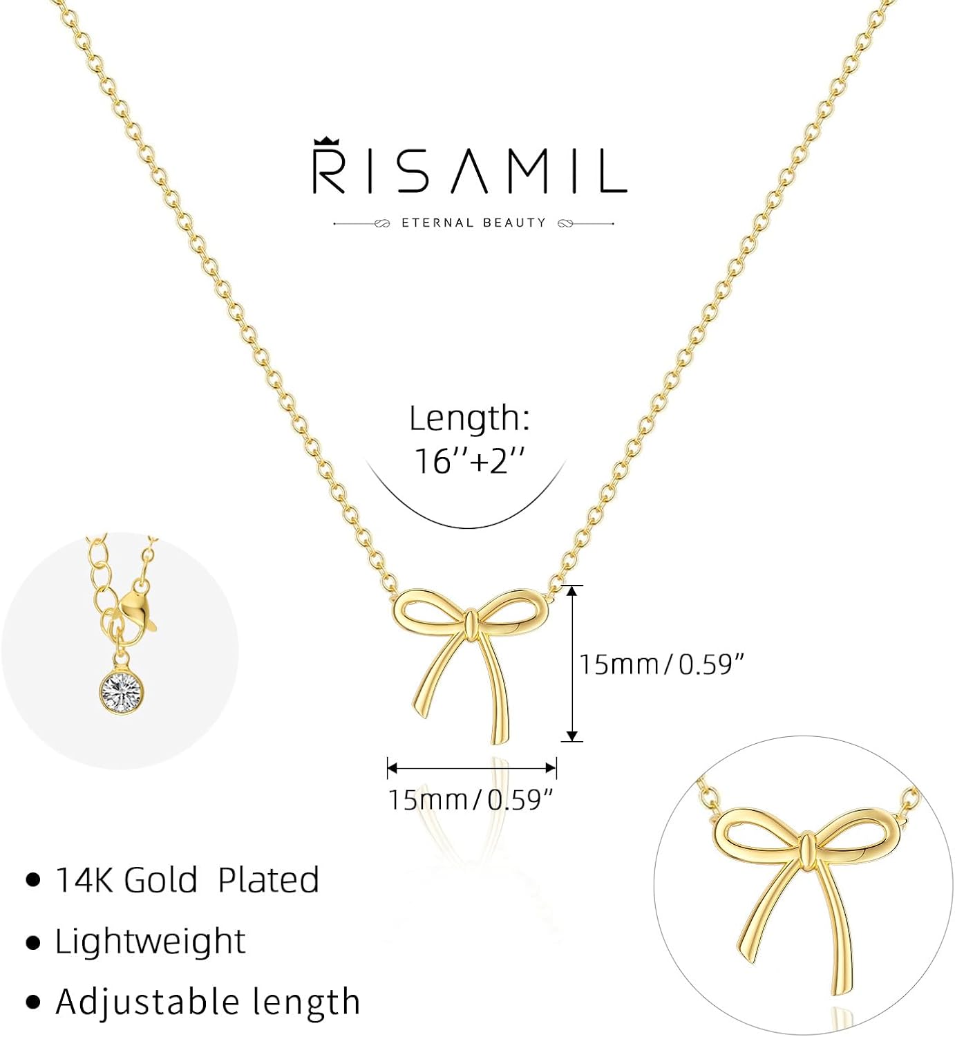 This Gold Bow Necklace is a great gift idea for any woman in your life, whether it's for a birthday, anniversary, or just because. The timeless design and quality craftsmanship of this necklace make it a piece that will be treasured for years to come. Treat yourself or a loved one to this beautiful piece of gold jewelry and add a touch of sophistication to any outfit.